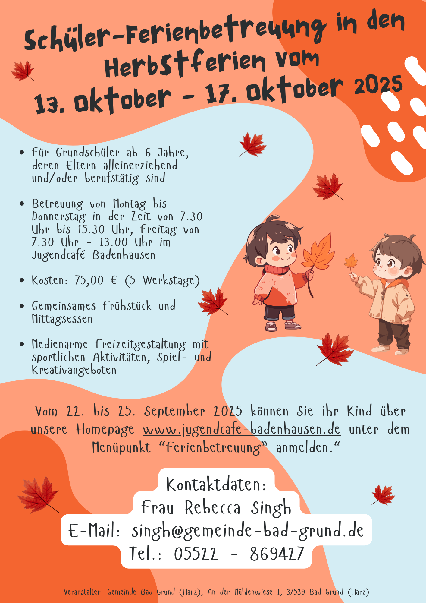 Hier finden Sie die Online-Anmeldung zur Schüler-Ferienbetreuung und sonstige Informationen.